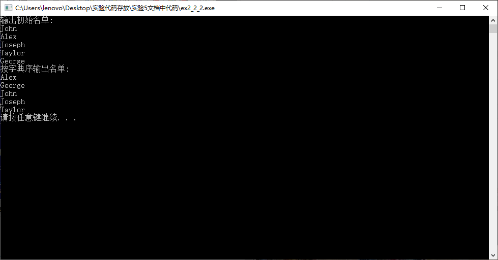 selectSort(name, 5); // 调用选择法对name数组中的字符串排序