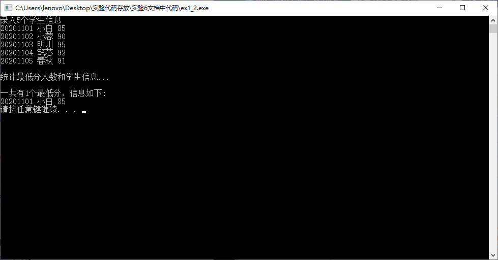 printf("\n一共有%d个最低分,信息如下:\n", count);