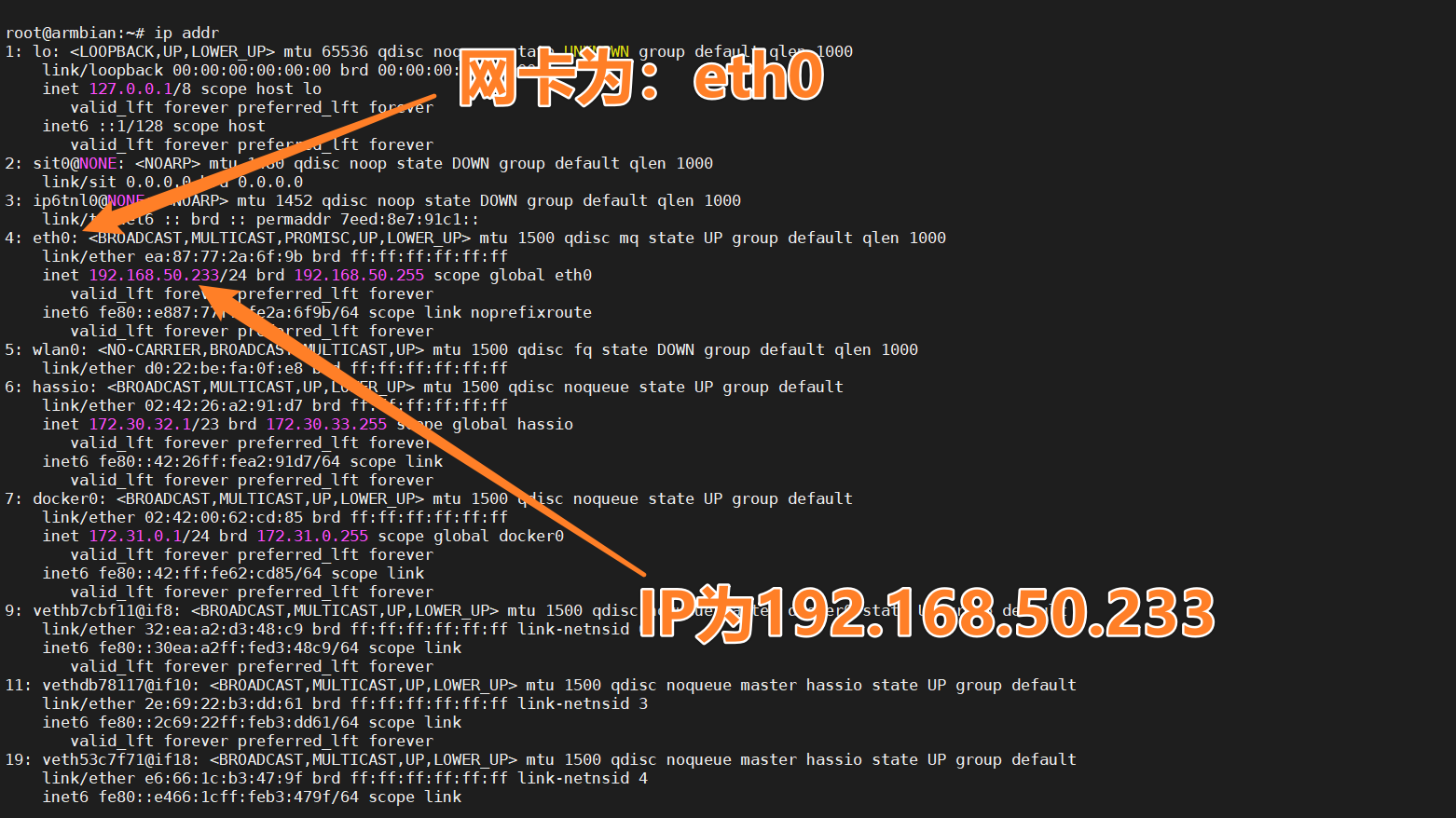sudo ip link set 你自己的网卡名称 promisc on ##以下是我的网卡名称,每台设备可能不一样,要注意!!!! sudo ip link set eth0 promisc on没打开的状态