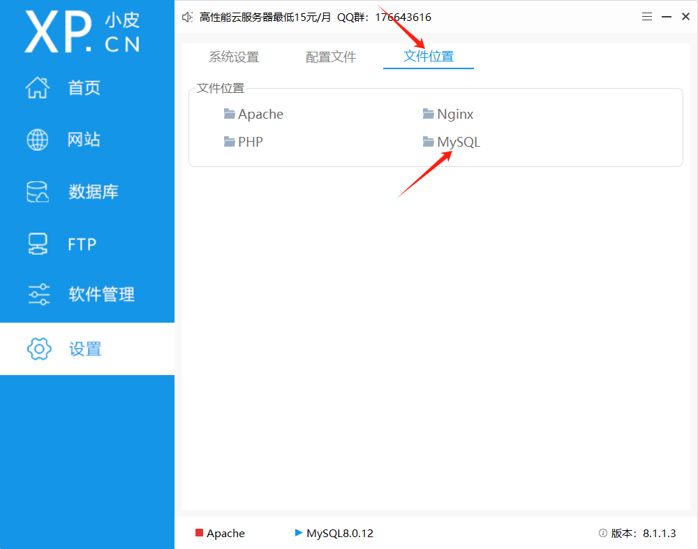 点击设置-文件位置-MySQL,打开文件路径,复制路径到Windows设置环境变量