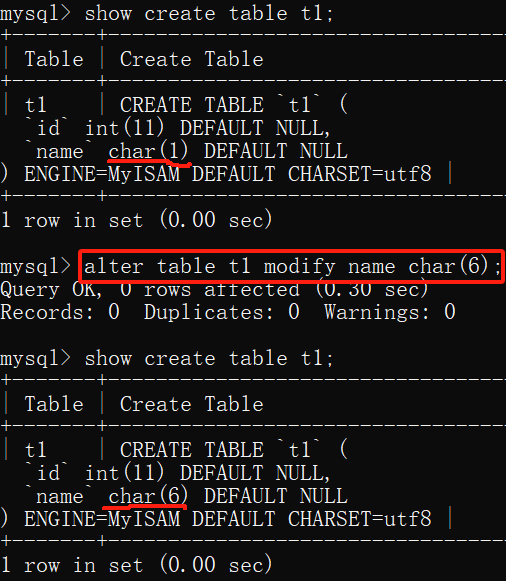 alter table 数据表名称 change 原字段 改后字段 数据类型(宽度);