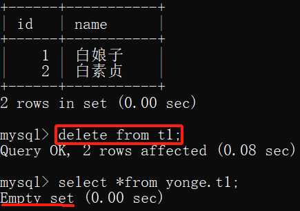 改:update 数据库名称.数据表名称 set 字段=数据;