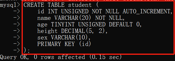 -- 方式一 CREATE TABLE users ( id INT AUTO_INCREMENT PRIMARY KEY, email VARCHAR(255) UNIQUE, username VARCHAR(50) ); -- 方式二 CREATE TABLE department ( id INT, name CHAR(10), UNIQUE(id), UNIQUE(name) );