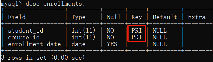 CREATE TABLE enrollments ( student_id INT, course_id INT, enrollment_date DATE, PRIMARY KEY (student_id, course_id) );