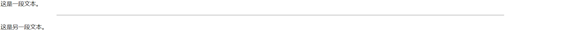 <head> <meta charset="UTF-8"> <style> hr { border: none; height: 2px; background-color: #ccc; width: 80%; margin: 20px auto; } </style> </head> <body> <p>这是一段文本。</p> <hr> <p>这是另一段文本。</p> </body>