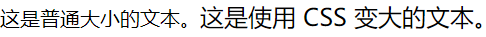 <p>这是普通大小的文本。<big>这是使用 big 标签变大的文本。</big></p>