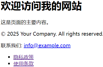 标签为内容赋予语义,表明这部分内容是联系信息,有助于搜索引擎和屏幕阅读器理解网页结构。 - 样式:浏览器默认会将