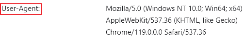 #伪装成浏览器的身份进行抓取 headers = { 'user-agent': 'Mozilla/5.0 (Windows NT 10.0; Win64; x64) AppleWebKit/537.36 (KHTML, like Gecko) Chrome/119.0.0.0 Safari/537.36' }