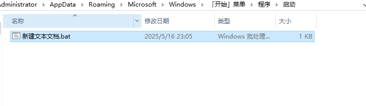 如下图,此时弹出的窗口就是开机启动的程序文件夹,将制作的bat拷贝放到此目录下,就可以实现每次开机自启了