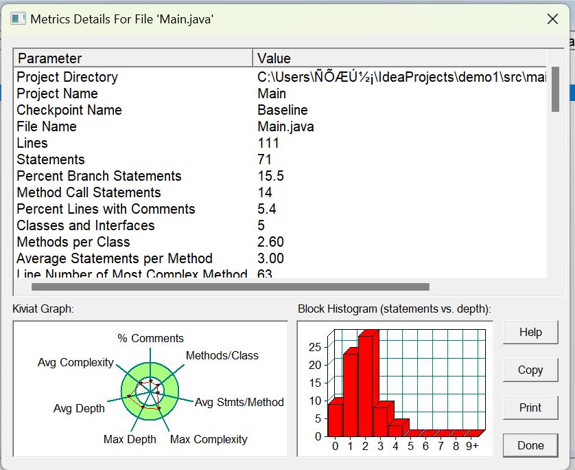 通过报表内容可以知道我代码的平均复杂度还是没有到达良好,在注释语句和方法等方面还有很大的进步,以后在进行这种面向对象的程序时,应该对每个对象有一个清楚的认知,明确他们的作用,并且可以适当加上一些注释,避免下次回过头来看不理解自己代码。