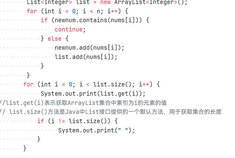 在第三次作业的7-3中,我开始将查重过后的整数储存到HashSet中,之后输出得不到正确答案,经过多次改进后发现需要HashSet会将里面得数字自动排序,需另外创一个ArrlyList对象,用来储存后输出。还需要设置一个if条件,保证行末没有空格。代码如下: