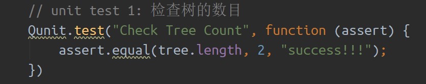 - 这个Qunit真是磨人的小妖精🙄我以为是路径设置错误导致无法正常调用,结果是因为它只能在主页面(html)写script去测试!!看了官网的文档后改成了憨憨写法——在被测试Js文件中写相应的get函数返回对应的值,以用于比较。
