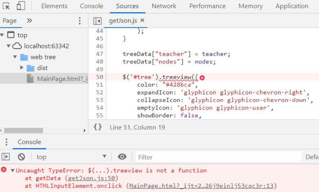 - 花了一下午的时间去百度、找资料想去解决这个问题,可惜到晚饭前依旧都没有解决,当时都快要崩溃了(图1)。好在晚饭后的再次尝试,让我们取得了重大突破:将数据按照可以运行的普通数据模板(使用浏览器的调试功能可以看到数据格式)一层层嵌套,最终调用treeview运行成功!!!(图2、3)