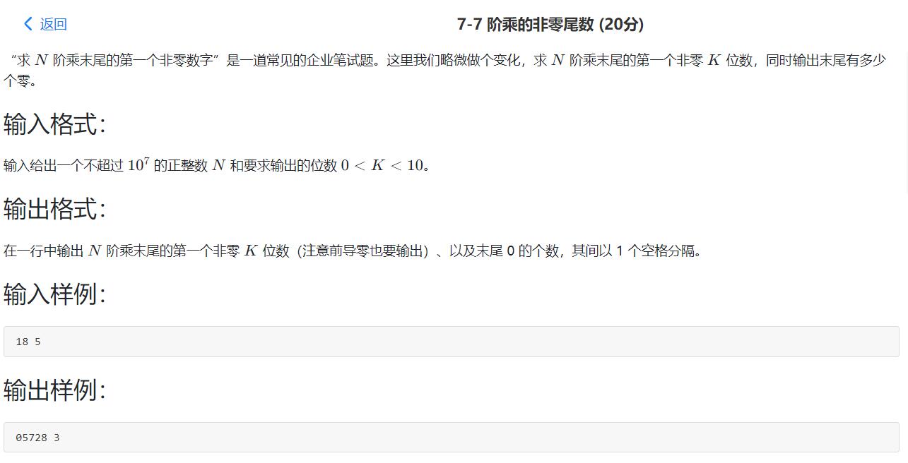 - n的阶乘的最后k位数, k位数可以有k - 1个前导0而不能有一个尾随0 [巨坑]