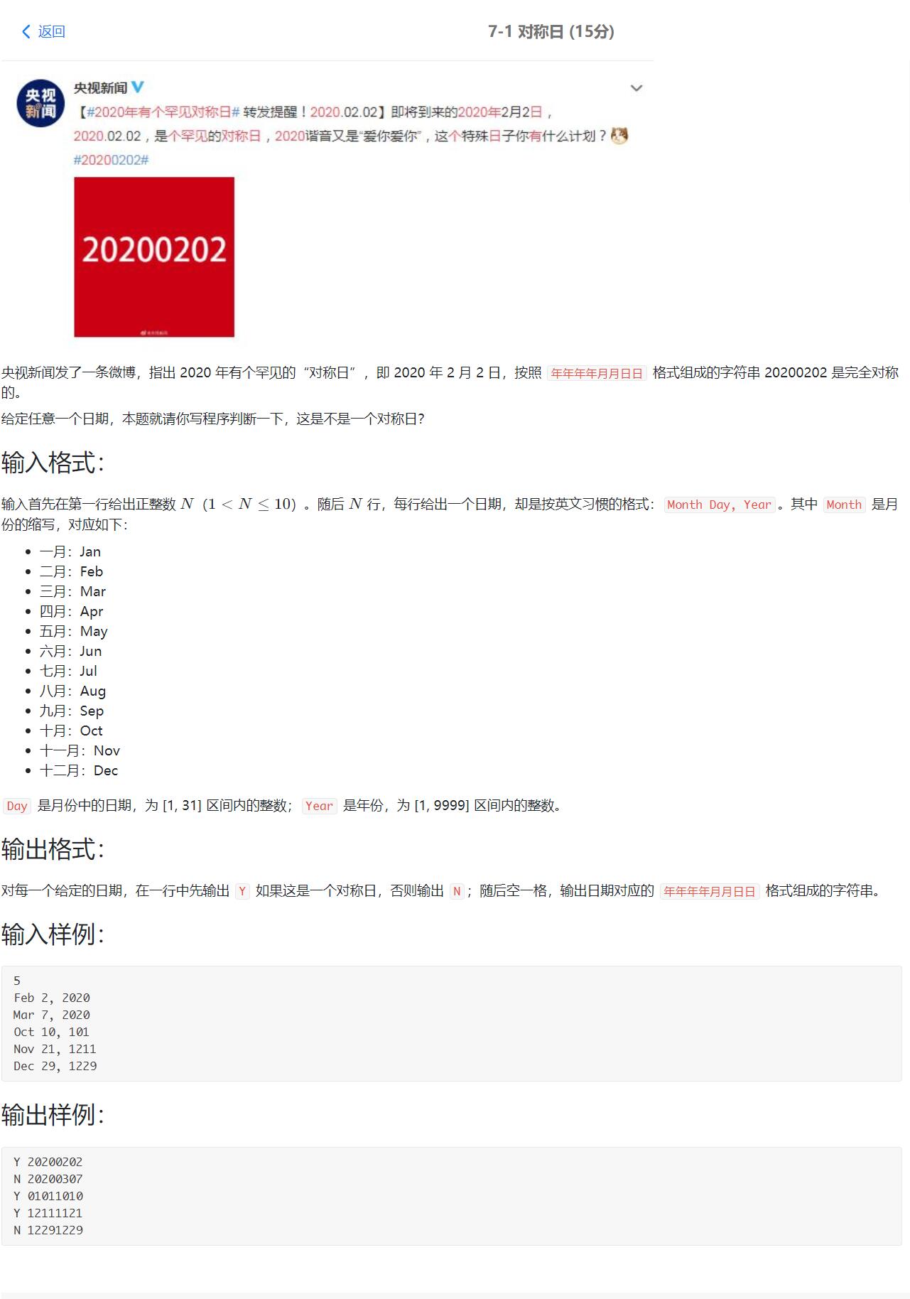 对称日(15分)