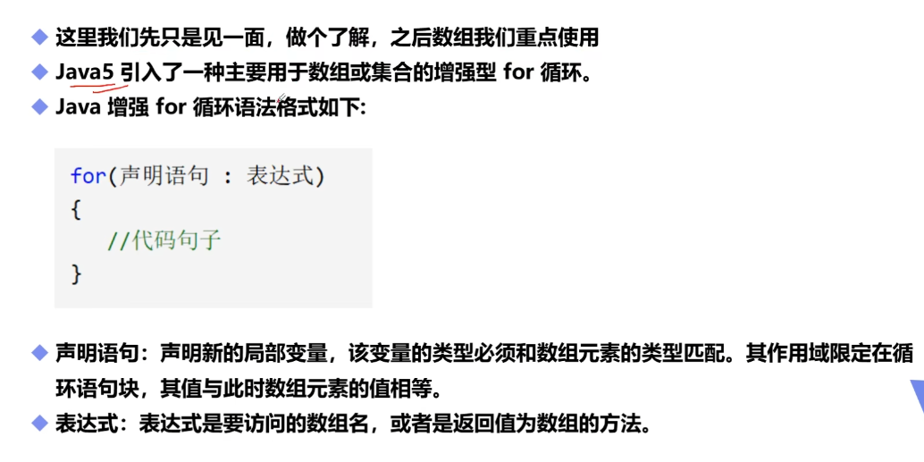java5 中引入了一种主要用于数组的增强型for循环