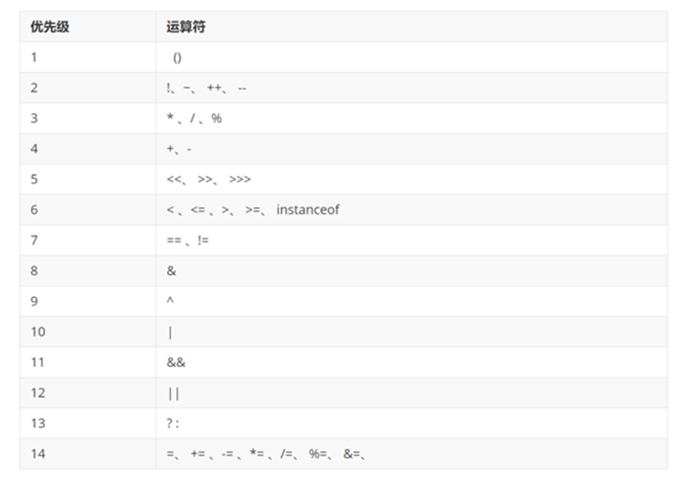 ^ 逻辑异或,不同返回true ,相同返回false,也可为运算符进行二进制运算, && || ,前面成立后面不执行。& | 按位运算符,将数转为二进制进行逻辑判断,>> << 移位运算,将数转为二进制进行移位,如 5 >> 2 ===> 0000 0000 0000 0101 ===> 0000 0000 0000 0001 变为了1,符号位不参与运算,等价于 5 / (2 *2) 。 ~ 取反运算符,转换为二进制 0 1 取反运算,>>> 无符号移位运算,符号位也参与移位。