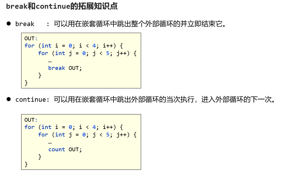 for(初始化语句;循环条件;迭代语句) 先执行一次初始化语句,然后判断循环条件,执行循环语句,再执行迭代语句,再判断循环条件。