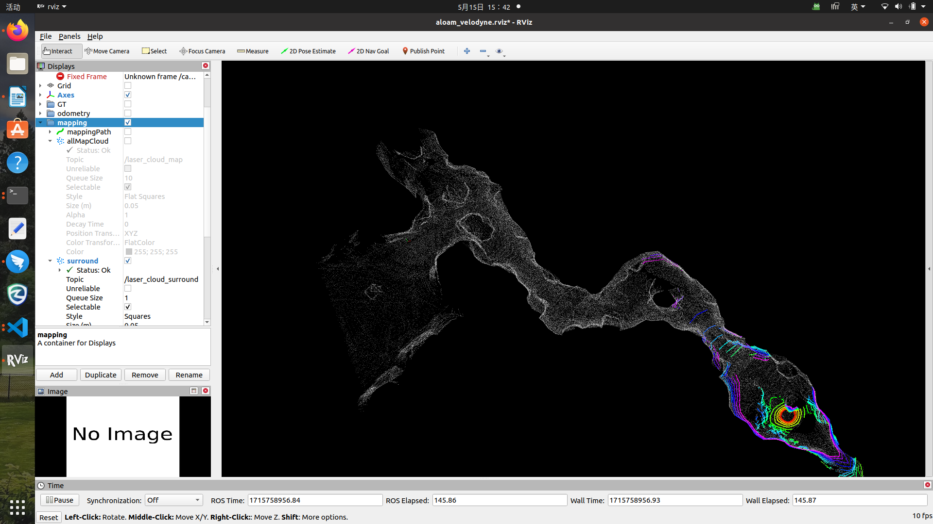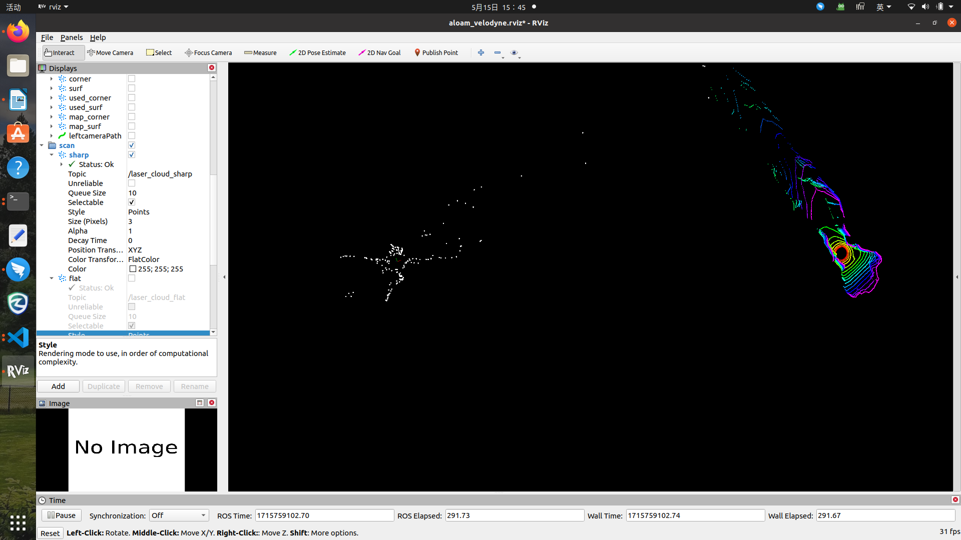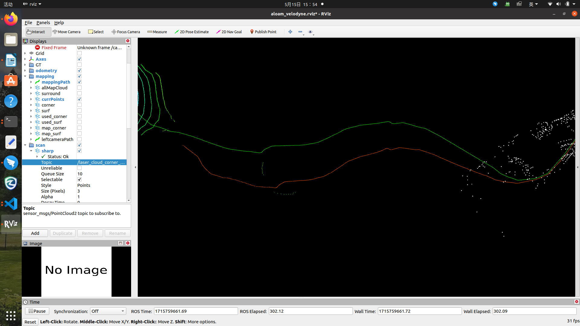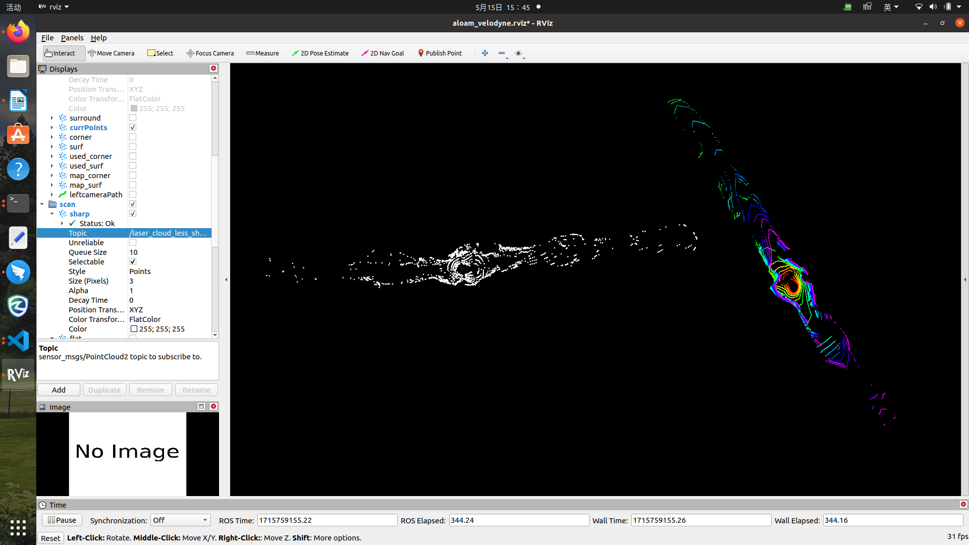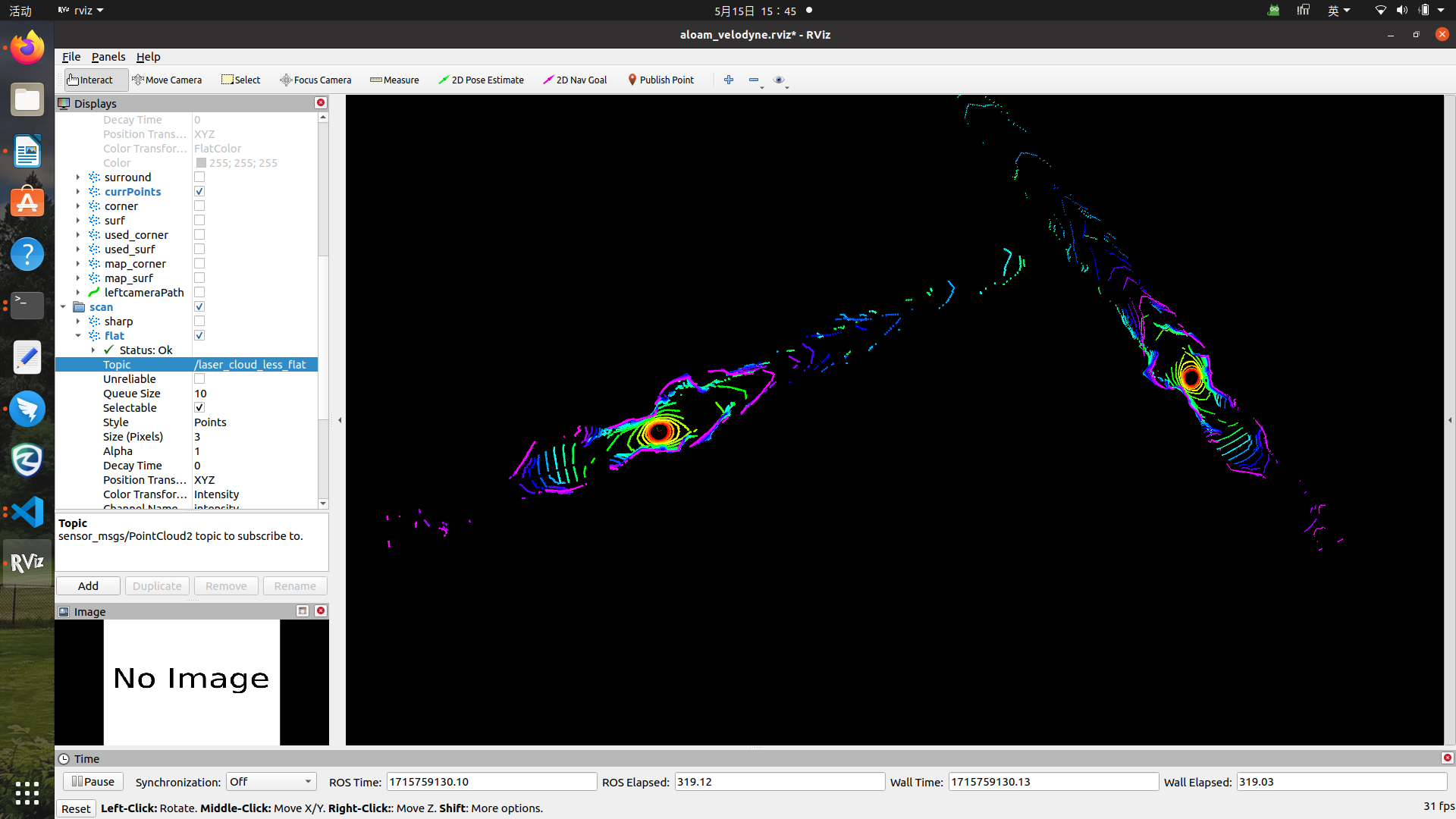 这部分点云就是利用激光帧起止时刻间的imu数据计算旋转增量,imu里程计数据(经过雷达里程计约束后的里程计,这里相当于对里程计再次精修一下)计算平移增量。进而对当前帧激光雷达每一时刻的激光点进行运动畸变矫正(利用相对于激光帧起始时刻的位姿增量去畸变,这里aloam采用基于匀速模型按时间进行线性插值的方式);