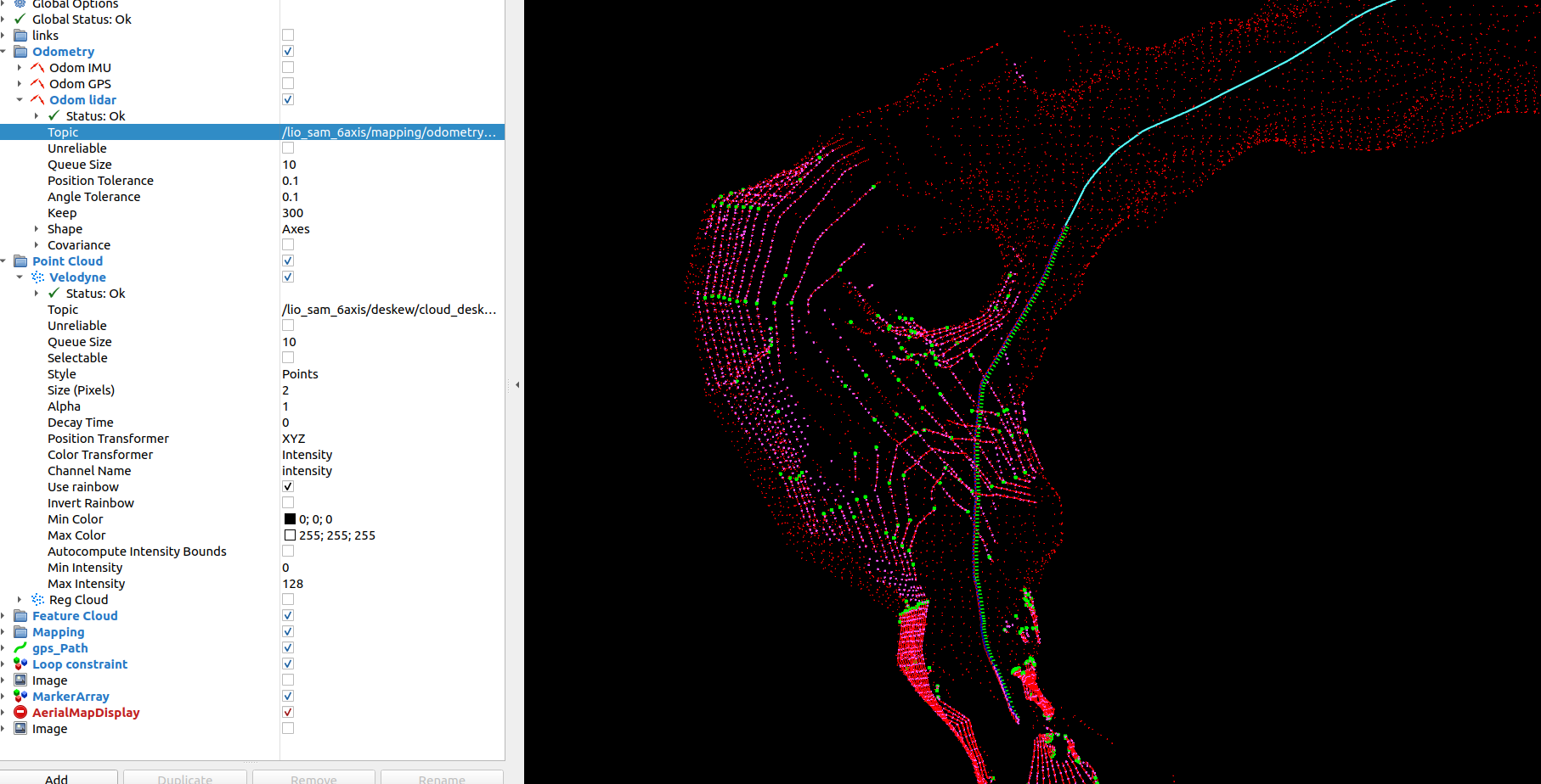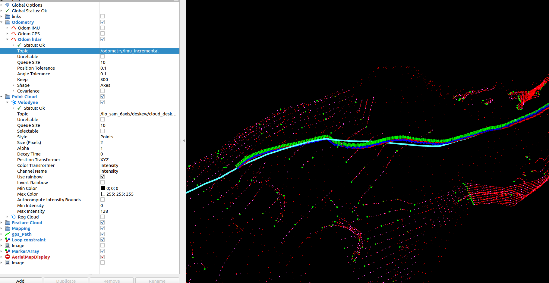 下图为aloam和liosam的轨迹对比,存在细微偏差。