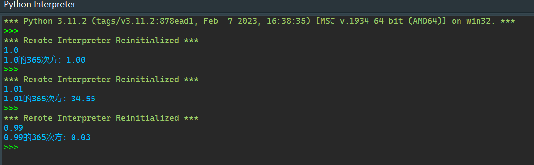 x = float(input()) y = x**356 print(f'{x}的365次方:{y:.2f}')