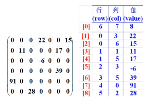 如下图:左边是原始数组,右边是稀疏数组