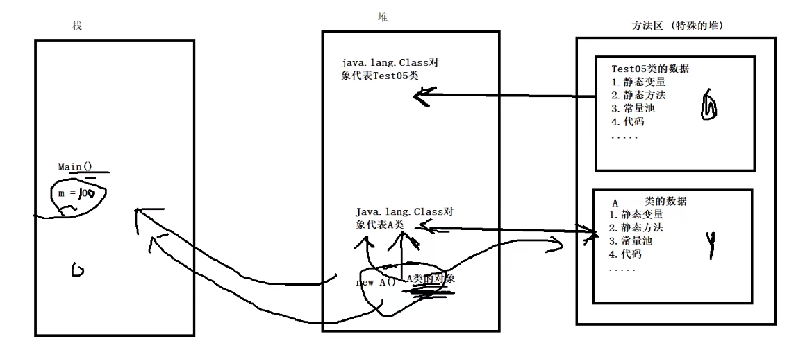 //一个类被加载后,类的整个结构都会被封装在Class对象中