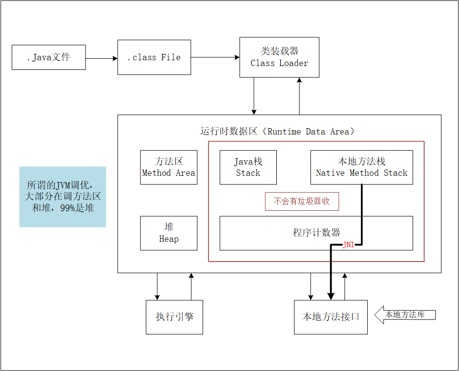 字节码校验器(bytecode verifier):确保Java类文件遵循Java语言规范。这样可以帮助Java程序实现内存保护。但并不是所有的类文件都会经过字节码校验,比如核心类。 -