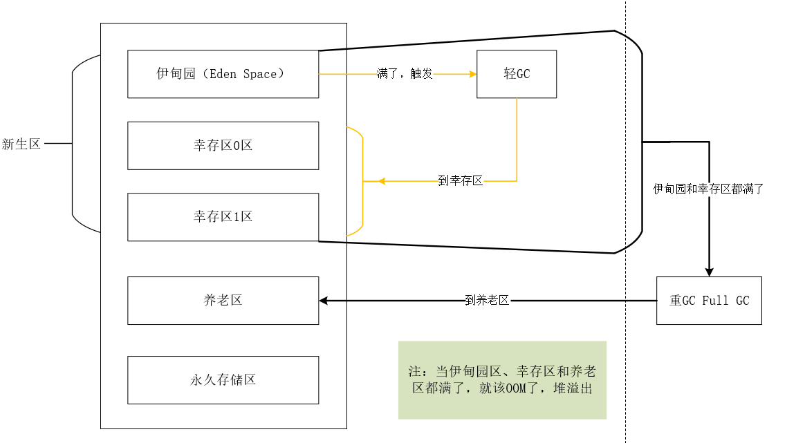 GC两种类型:轻GC(普通的GC),重GC(全局GC)