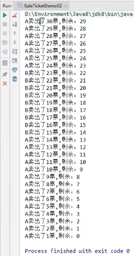 new Thread(()->{for (int i = 1; i < 40 ; i++) ticket.sale();},"B").start();