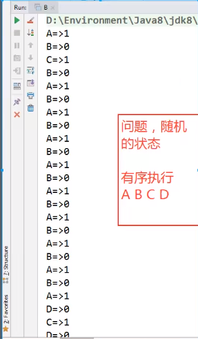 问题存在,A B C D 4 个线程! 虚假唤醒