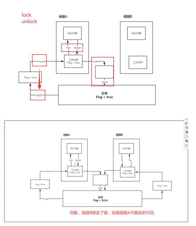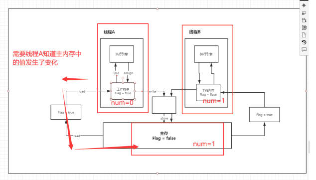 * 线程交替执行 A B 操作同一个变量 num = 0