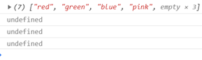 其中索引号是 4,5,6 的空间没有给值,就是声明变量未给值,默认值就是 undefined。