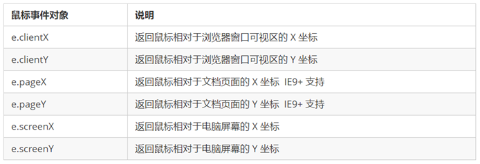 <html lang="en"><head><meta charset="UTF-8"><meta name="viewport" content="width=device-width, initial-scale=1.0"><meta http-equiv="X-UA-Compatible" content="ie=edge"><title>Document</title><style>body {height: 3000px;}</style></head><body><script>// 鼠标事件对象 MouseEventdocument.addEventListener('click', function(e) {// 1. client 鼠标在可视区的x和y坐标console.log(e.clientX);console.log(e.clientY);console.log('---------------------');// 2. page 鼠标在页面文档的x和y坐标console.log(e.pageX);console.log(e.pageY);console.log('---------------------');// 3. screen 鼠标在电脑屏幕的x和y坐标console.log(e.screenX);console.log(e.screenY);})</script></body></html>