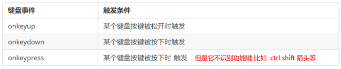 事件除了使用鼠标触发,还可以使用键盘触发。