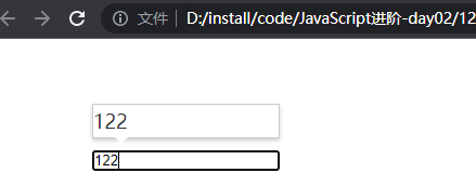 <html lang="en"><head><meta charset="UTF-8"><meta name="viewport" content="width=device-width, initial-scale=1.0"><meta http-equiv="X-UA-Compatible" content="ie=edge"><title>Document</title><style>* {margin: 0;padding: 0;}.search {position: relative;width: 178px;margin: 100px;}.con {display: none;position: absolute;top: -40px;width: 171px;border: 1px solid rgba(0, 0, 0, .2);box-shadow: 0 2px 4px rgba(0, 0, 0, .2);padding: 5px 0;font-size: 18px;line-height: 20px;color: #333;}.con::before {content: '';width: 0;height: 0;position: absolute;top: 28px;left: 18px;border: 8px solid #000;border-style: solid dashed dashed;border-color: #fff transparent transparent;}</style></head><body><div class="search"><div class="con">123</div><input type="text" placeholder="请输入您的快递单号" class="jd"></div><script>// 快递单号输入内容时, 上面的大号字体盒子(con)显示(这里面的字号更大)// 表单检测用户输入: 给表单添加键盘事件// 同时把快递单号里面的值(value)获取过来赋值给 con盒子(innerText)做为内容// 如果快递单号里面内容为空,则隐藏大号字体盒子(con)盒子var con = document.querySelector('.con');var jd_input = document.querySelector('.jd');jd_input.addEventListener('keyup', function() {// console.log('输入内容啦');if (this.value == '') {con.style.display = 'none';} else {con.style.display = 'block';con.innerText = this.value;}})// 当我们失去焦点,就隐藏这个con盒子jd_input.addEventListener('blur', function() {con.style.display = 'none';})// 当我们获得焦点,就显示这个con盒子jd_input.addEventListener('focus', function() {if (this.value !== '') {con.style.display = 'block';}})</script></body>![]()