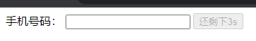 <html lang="en"><head><meta charset="UTF-8"><meta name="viewport" content="width=device-width, initial-scale=1.0"><meta http-equiv="X-UA-Compatible" content="ie=edge"><title>Document</title></head><body>手机号码: <input type="number"> <button>发送</button><script>var btn = document.querySelector('button');var time = 3;btn.addEventListener('click', function(){btn.disabled = true;var timer = setInterval(function(){if(time == 0) {clearInterval(timer);btn.disabled = false;btn.innerHTML = '发送';time = 3;} else {btn.innerHTML = '还剩下'+time+'s';time--;}}, 1000);})</script></body></html>![]()