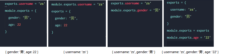 使用 require() 方法导入模块时,导入的结果,永远以 module.exports 指向的对象为准。
