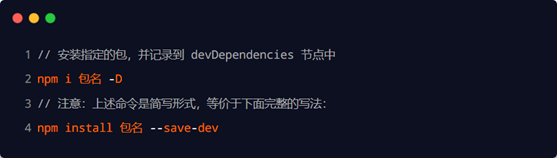 开发依赖包(被记录到 devDependencies 节点中的包,只在开发期间会用到)