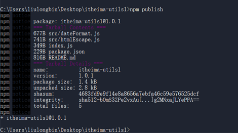 将终端切换到包的根目录之后,运行 npm publish 命令,即可将包发布到 npm 上(注意:包名不能雷同)。