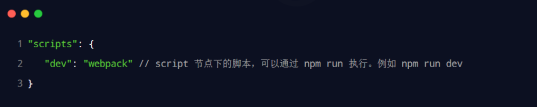 ② 在 package.json 的 scripts 节点下,新增 dev 脚本如下:
