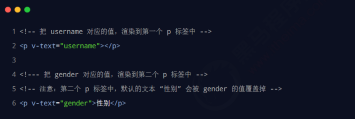 内容渲染指令用来辅助开发者渲染 DOM 元素的文本内容。常用的内容渲染指令有如下 3 个: