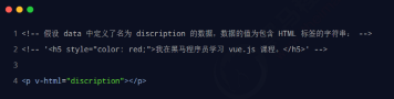 v-text 指令和插值表达式只能渲染纯文本内容。如果要把包含 HTML 标签的字符串渲染为页面的 HTML 元素, 则需要用到 v-html 这个指令: