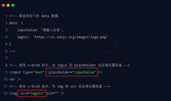 如果需要为元素的属性动态绑定属性值,则需要用到 v-bind 属性绑定指令。用法示例如下: