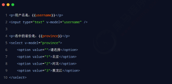 vue 提供了 v-model 双向数据绑定指令,用来辅助开发者在不操作 DOM 的前提下,快速获取表单的数据。