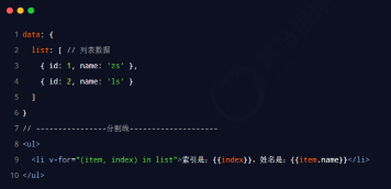 注意:v-for 指令中的 item 项和 index 索引都是形参,可以根据需要进行重命名。例如 (user, i) in userlist