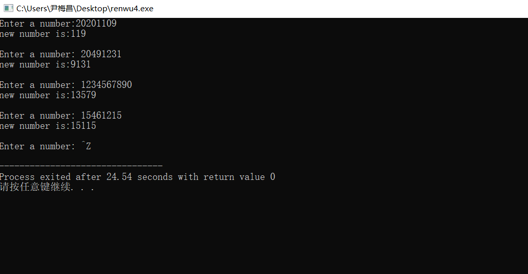 实验总结:实验任务四做了最长时间,五六加起来的时间还没有任务四的时间一半久,一开始多组输入都有问题,后来又是各种取奇数偶数方法的问题,但好在搞通了一些点之后,再做相类似的就会相对轻松