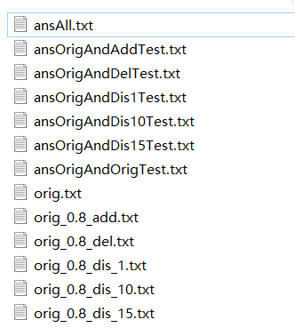 1 public class MainTest { 2 @Test 3 public void origAndAllTest(){ 4 String[] str = new String[6]; 5 str[0] = TxtIOUtils.readTxt("D:/test/orig.txt"); 6 str[1] = TxtIOUtils.readTxt("D:/test/orig_0.8_add.txt"); 7 str[2] = TxtIOUtils.readTxt("D:/test/orig_0.8_del.txt"); 8 str[3] = TxtIOUtils.readTxt("D:/test/orig_0.8_dis_1.txt"); 9 str[4] = TxtIOUtils.readTxt("D:/test/orig_0.8_dis_10.txt"); 10 str[5] = TxtIOUtils.readTxt("D:/test/orig_0.8_dis_15.txt"); 11 String ansFileName = "D:/test/ansAll.txt"; 12 for(int i = 0; i <= 5; i++){ 13 double ans = HammingUtils.getSimilarity(SimHashUtils.getSimHash(str[0]), SimHashUtils.getSimHash(str[i])); 14 TxtIOUtils.writeTxt(ans, ansFileName); 15 } 16 } 17 }