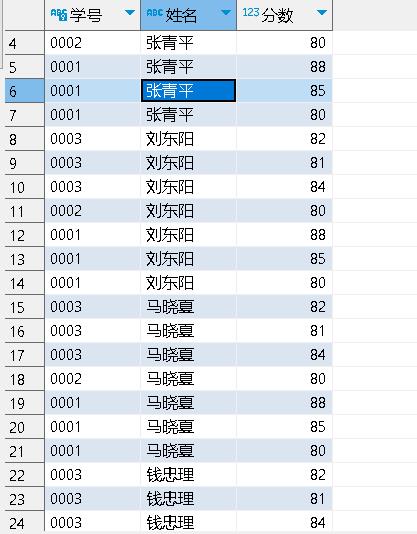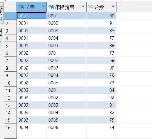 3.查询分数在80-90范围内的学生的学号、姓名、分数。