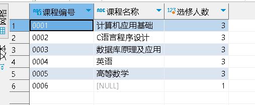 8.使用右外连接查询所有课程的选修情况,要求列出课程编号、课程名称、选修人数,curriculum表中没有的课程列值为空。
